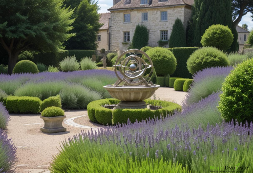Fokalne tačke: Napravite žarišne tačke sa klasičnim statuama, sunčanim satovima, kupatilima za ptice ili čak malim, ukrasnim ribnjakom. Ovo dodaje intrigu i dodir sofisticiranosti.